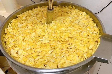 In den letzten Jahren wurde Taiwans Ananas-Kuchen international begrüßt. Die Füllung, die in diesem Ananas-Kuchen verwendet wird, ist taiwanische Ananas-Paste oder weiße Melonen-Paste. Normalerweise dauert es sehr lange, frische Ananas von Hand zu einer Paste zu rühren, aufgrund des hohen Wassergehalts. Mit unserem Kochmischer kann die Misch- und Erhitzungszeit erheblich verkürzt werden, und der beste Geschmack der taiwanesischen Ananas-Paste kann perfekt präsentiert werden.