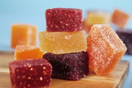 - Jelly Candy significa que o teor de água está entre 16%~25% após cozinhar e ferver, também adicionando algum amido ou hidrocolóide em doces, como Les Pâtes de Fruits, pastilhas de frutas, doce de tâmara e nozes, Turkish Delight, Lokum, barra de amendoim macia.