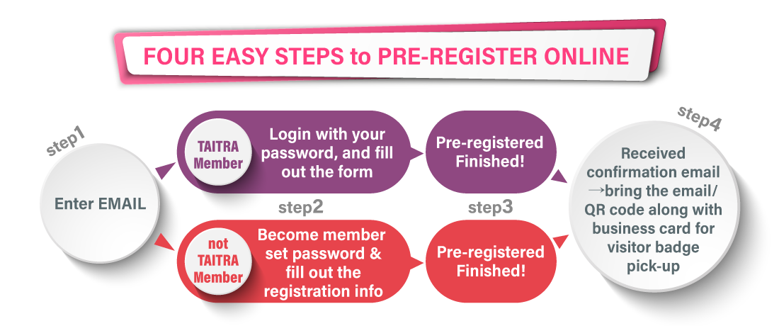 Онлайн-регистрация на FOOD TAIPEI MEGA SHOWS 2026 теперь открыта.Профессионалы могут зарегистрироваться по Ссылке для онлайн-регистрации.Регистрация на одно шоу предоставляет доступ ко всем пяти шоу.Смотрите шаги регистрации ниже:
